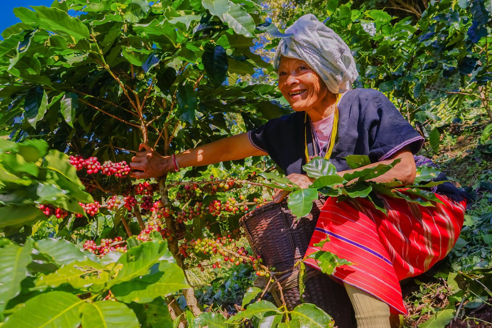 The coffee is planted in northern Thailand in the shade of the large jungle trees.